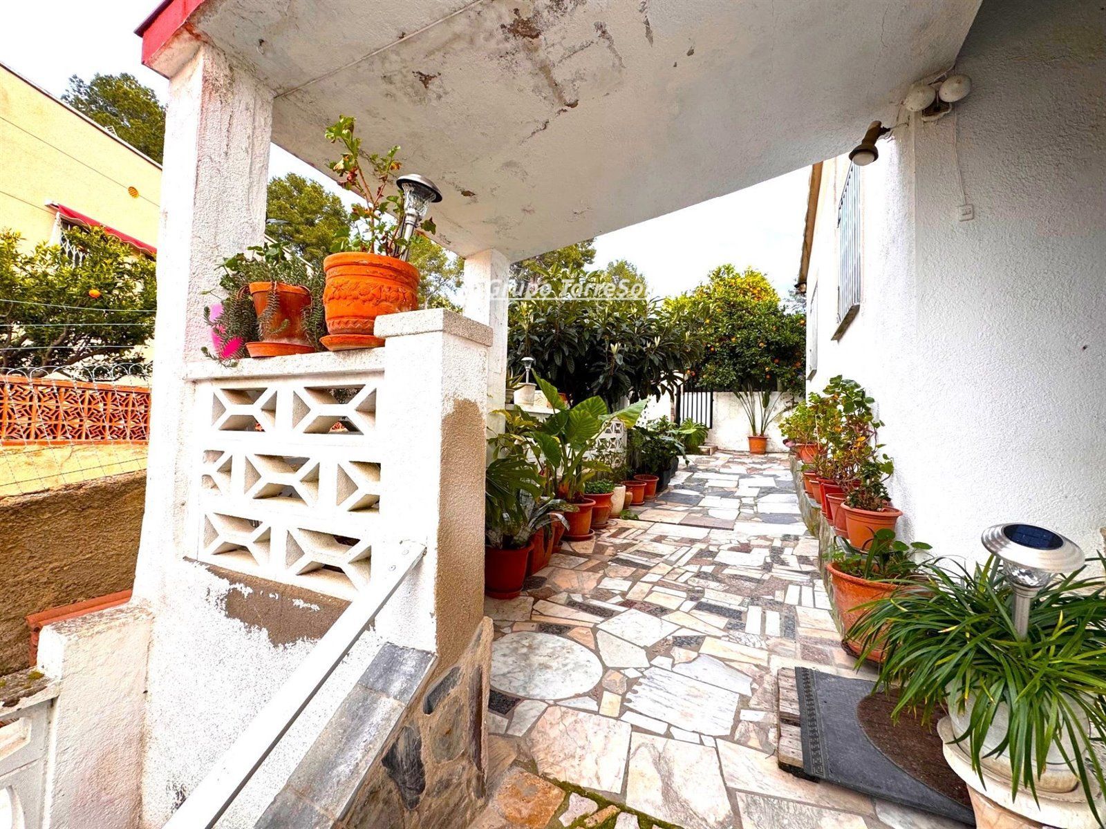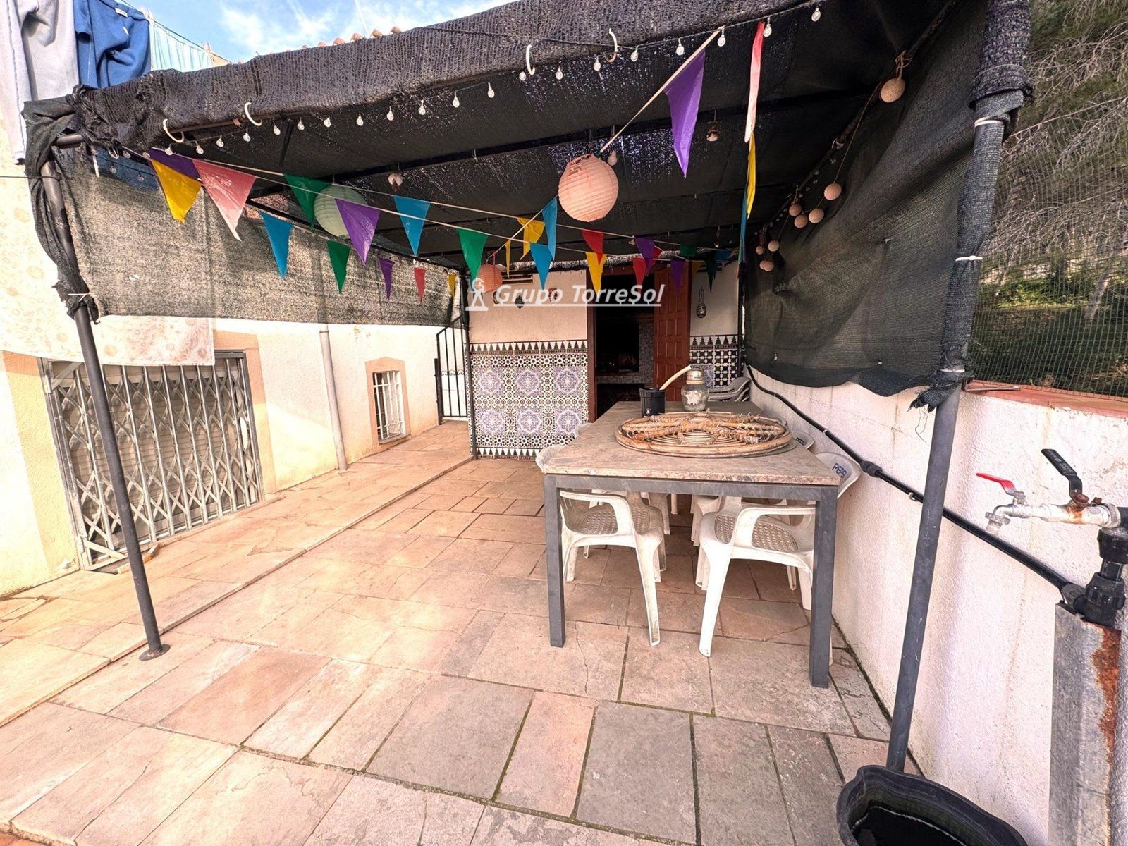 Fantástica casa en el Castillo de la Pobla de Montornés, que se componen de dos viviendas en una misma casa..Entrando a la parcela de la casa nos encontramos con un garaje para dos coches, varias motos y un trastero..Subiendo 3 escaleras tenemos la primera vivienda que consta de 2 habitaciones dobles y un baño completo reformado con plato de ducha y salón comedor de 25 m2 con cocina americana recién reformada y una estupenda chimenea de leña. Encontramos también 3 estancias para trasteros ..Todas las ventanas son de aluminio con cristales dobles, mosquiteras y calefacción eléctrica. .Saliendo al pasillo central exterior de la casa nos encontramos con la segunda vivienda que consta de 3 habitaciones dos de ellas dobles y una individual, otro cuarto de baño con bañera y una cocina de 10 m2 con cocina semi-abierta al comedor de 25 m2 con salida a una espectacular terraza de 40 m2 con fantásticas vistas a la urbanización..También constan en todas las estancias los cerramientos de aluminio con cristales de doble cámara y mosquiteras..Dispone de una parcela de 716 m2 donde encontramos con un patio con su barbacoa de 50 m2 , parcela con árboles frutales y buena tierra para arar, y una magnífica piscina en perfecto funcionamiento ..NO DEJEN DE VISITARLO YA QUE ES UNA MUY BUENA CASA PARA VIVIR!!!!!.