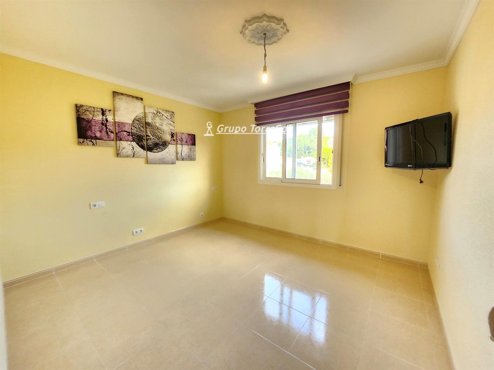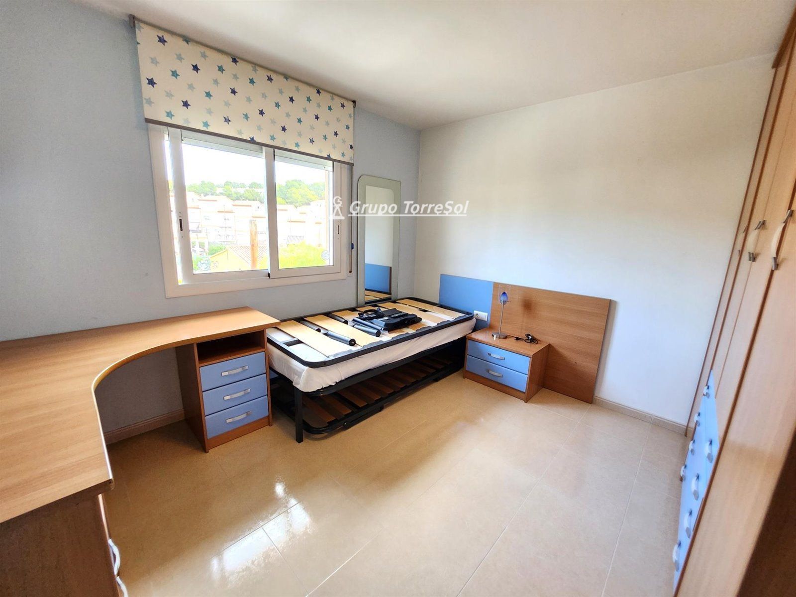 NO SE ADMITEN ANIMALES..Fantástica casa pareada de 130 m2 en dos plantas de las cuales a continuación detallamos distribuciones..Garaje de 65 m2 , trastero..1º Planta: Salón comedor de 30 m2 muy soleado y de grandes espacios , persiana eléctrica ,cocina independiente de 12 m2 completamente equipada con salida a la parte trasera de la casa que se compone de un porche con toldos , barbacoa y si se quiere entrada para otro coche. baño de cortesía en planta. Recibidor y entrada a la casa acristalada..2º planta : 4 habitaciones, dos de ellas dobles y dos individuales bastante grandes, 1 baño completo con plato de ducha ..Preciosas vistas y casa del 2005 , placa solar , cerramientos de aluminio con cristales de doble cámara, 2 aparatos de aire acondicionado con bomba de calor..SEMI AMUEBLADO.