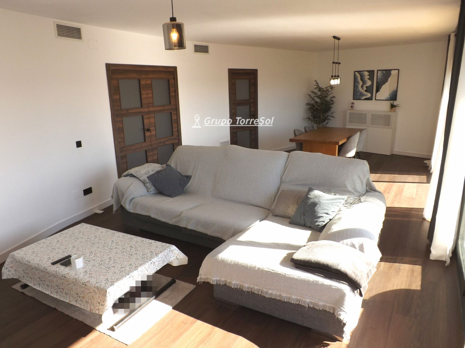 En el interior, la propiedad ofrece una distribución funcional y elegante: amplio recibidor, luminoso salón-comedor, cocina de diseño totalmente equipada, zona de lavadero independiente y dos baños completos, uno de ellos en suite.