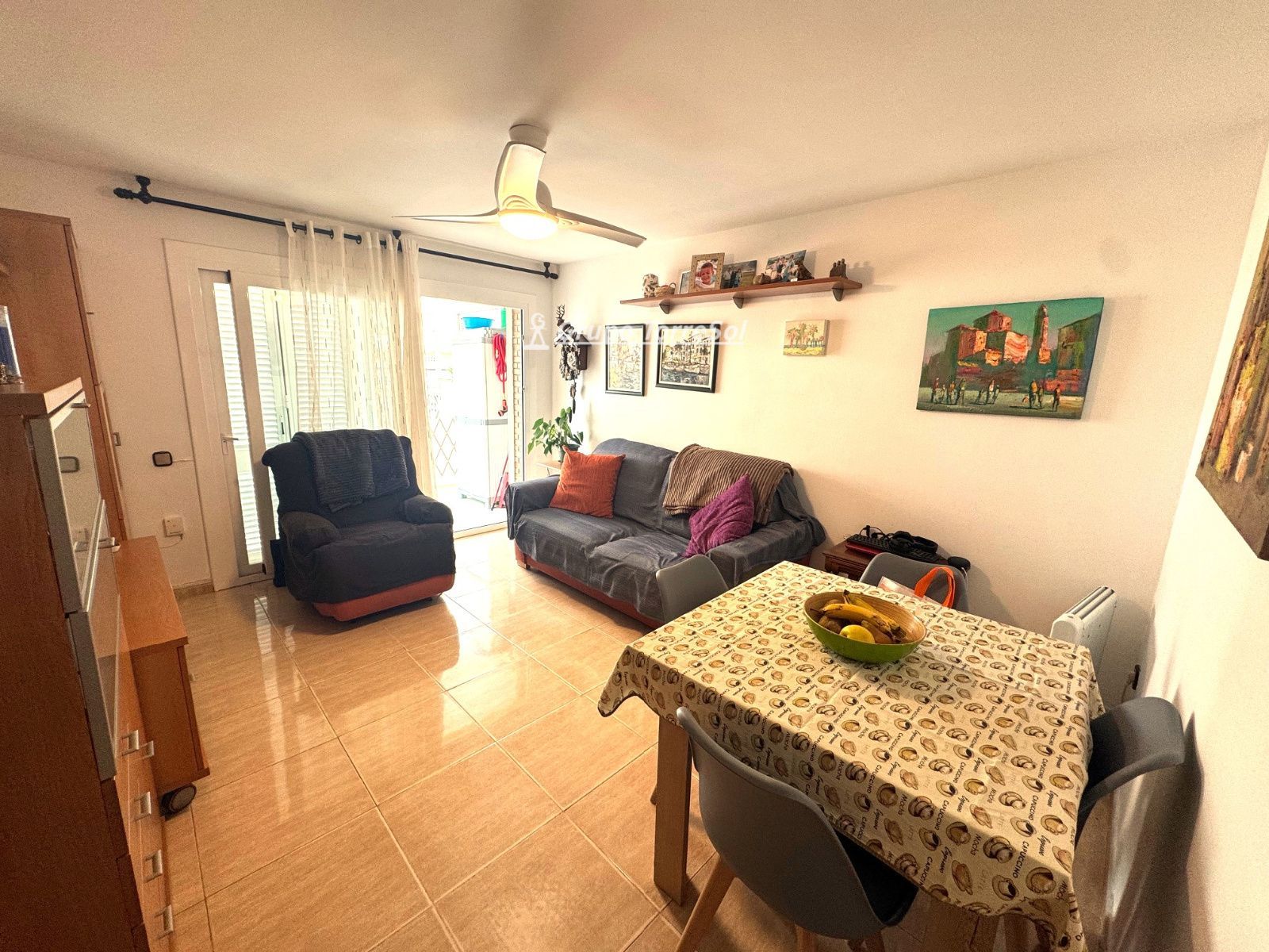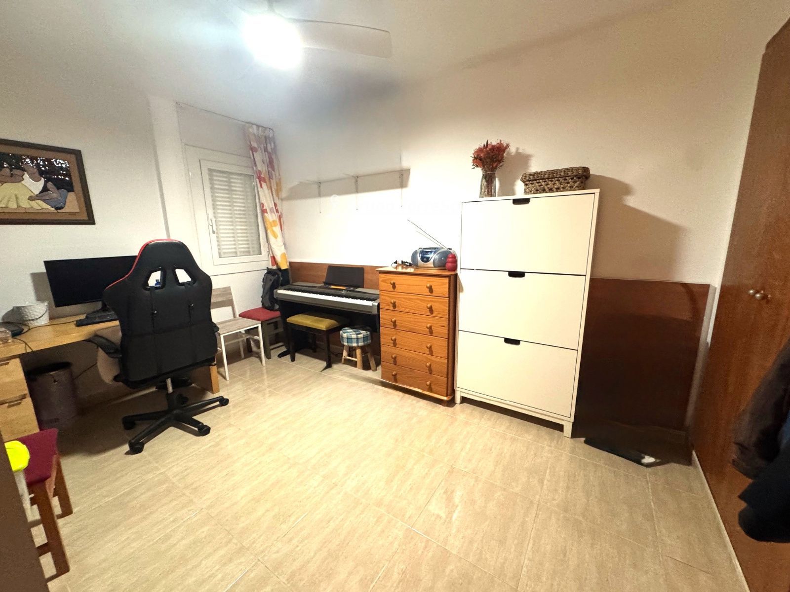 Entre sus calidades destacan cerramientos de aluminio con doble acristalamiento y porticones, suelos de gres, puertas de madera recién instaladas y ventiladores de techo con iluminación.