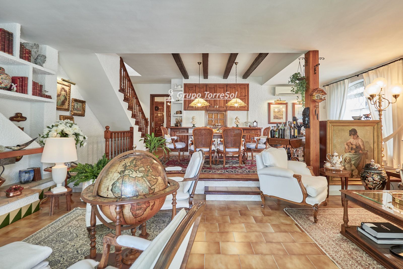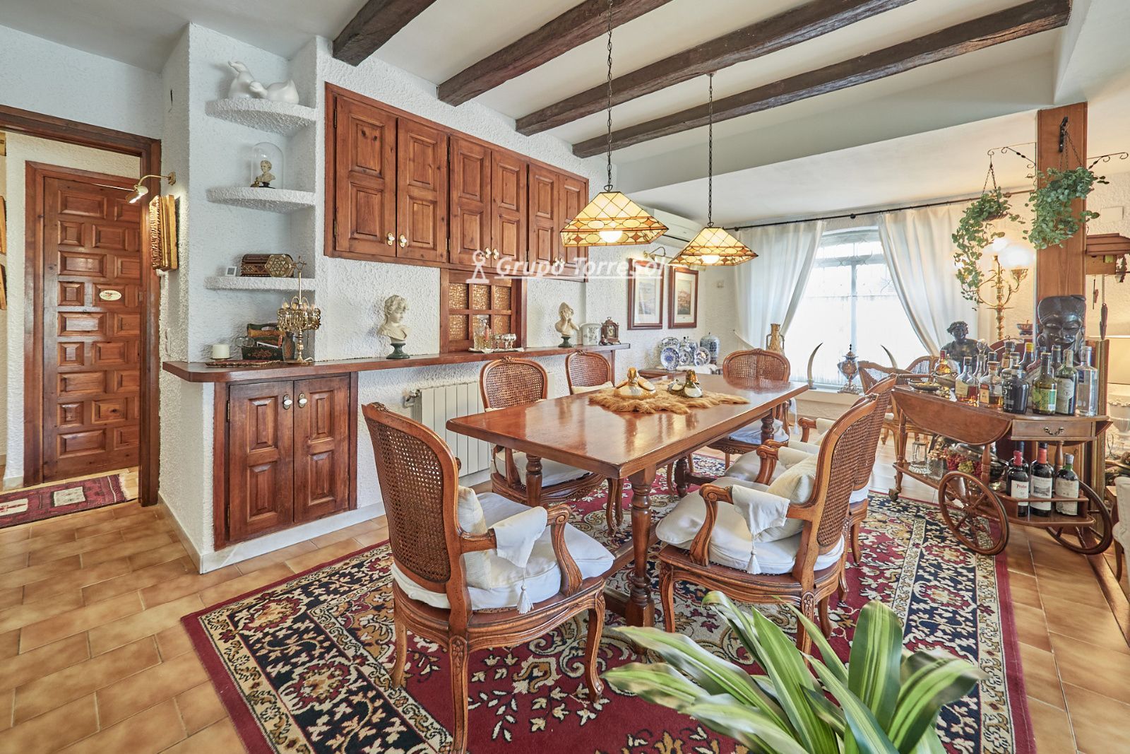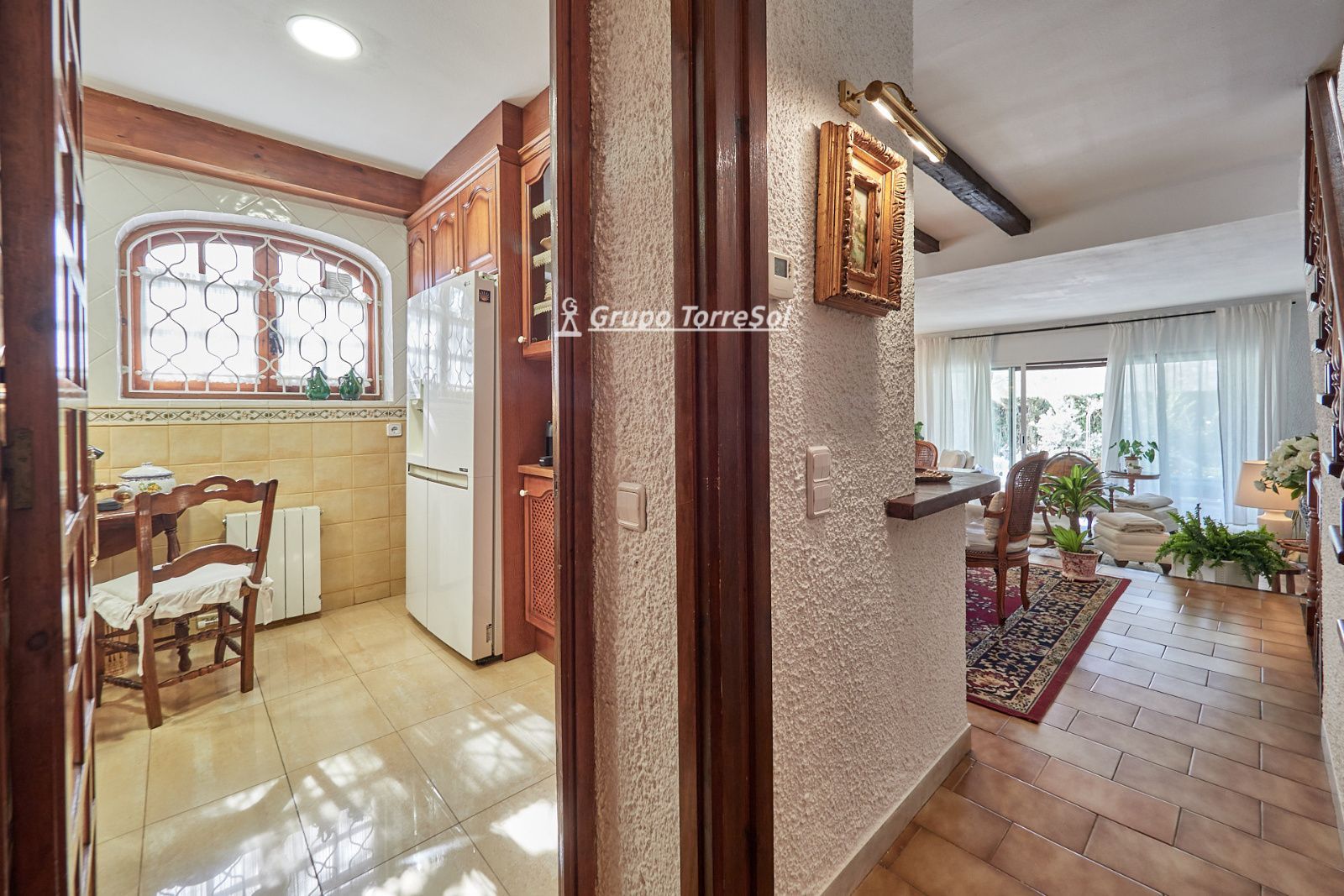 La distribución está pensada para aprovechar el espacio al máximo. En la primera planta nos encontramos con una bonita cocina amueblada y equipada con un estilo rústico y moderno acorde al estilo de la vivienda, un baño completo y un estiloso y amplio salón comedor a dos niveles ideales para crear dos ambientes perfectos ( sala de estar y zona comedor) con chimenea , desde este accedemos a una terraza con cerramiento de aluminio que nos da la opción de disfrutarla tanto en verano como en invierno y un pequeño y acogedor jardín. En la segunda planta nos encontramos con tres habitaciones dobles todas ellas exteriores con un bonito estilo cada uno. La principal es suite con salida a terraza en la que nos encontramos con un lavadero. Las otras dos estancias acceden a un baño común completo y una de ellas tiene salida a una pequeña terraza. Los armarios empotrados en todas las habitaciones facilitan el orden y almacenamiento de los espacios. La vivienda, al ser esquinera y toda exterior, cuenta con mucha luz natural. Dos chimeneas aportan calidez en las estaciones más frías mientras que el aire acondicionado, y la calefacción radial a gas natural, mantienen una climatización agradable durante todo el año. A la planta semi sótano accedemos desde el comedor y nos sorprende su amplio espacio. Un salón de unos 50m² y tres pequeñas habitaciones ó zonas de almacenamiento. Ideal para reuniones con amigos y familiares.